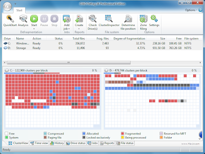 이 프로그램은 파일 단편화의 빌드 - 업 방지하여 최고 성능의 시스템을 유지, 수동으로 드라이브를 조각 모음, 또는 배경에서 완전 자동으로 할 수 있습니다. 조각 모음 작업은 여러 가지 기준을 사용하여 예약 할 수 있습니다. 추가 기능 상태 보고서, 클러스터 관리자, 명령 줄 인터페이스, 옵션 MMC 통합, 부팅 시간 조각 모음, 모바일 시스템을위한 특별 지원 등이 있습니다. 하드 디스크는 컴퓨터의 가장 느린 구성 요소는 사실 때문에, 그 최적화는 특히 중요한 문제이다.